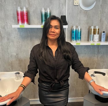 Etter 29 år som frisør i Thailand valgte jeg å starte et nytt kapittel i Norge. Det ga meg muligheten til å kombinere erfaringen min fra Asia med inspirasjon og teknikker jeg har lært her. Over tid har jeg fått gleden av å bygge en lojal kundekrets og skape min egen stil: en miks av to kulturer.