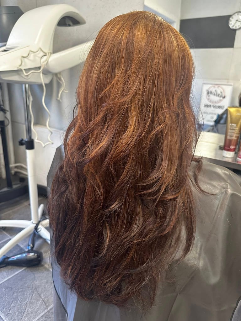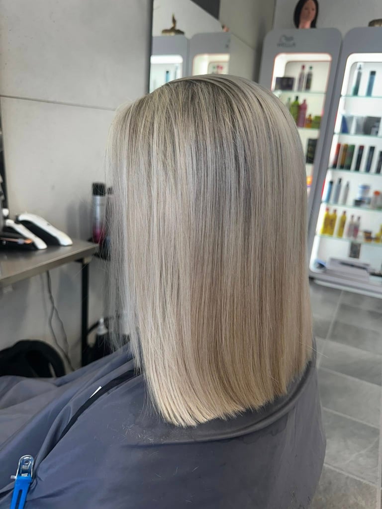 Helfarging, ettervekst, striper, balayage og permanent.